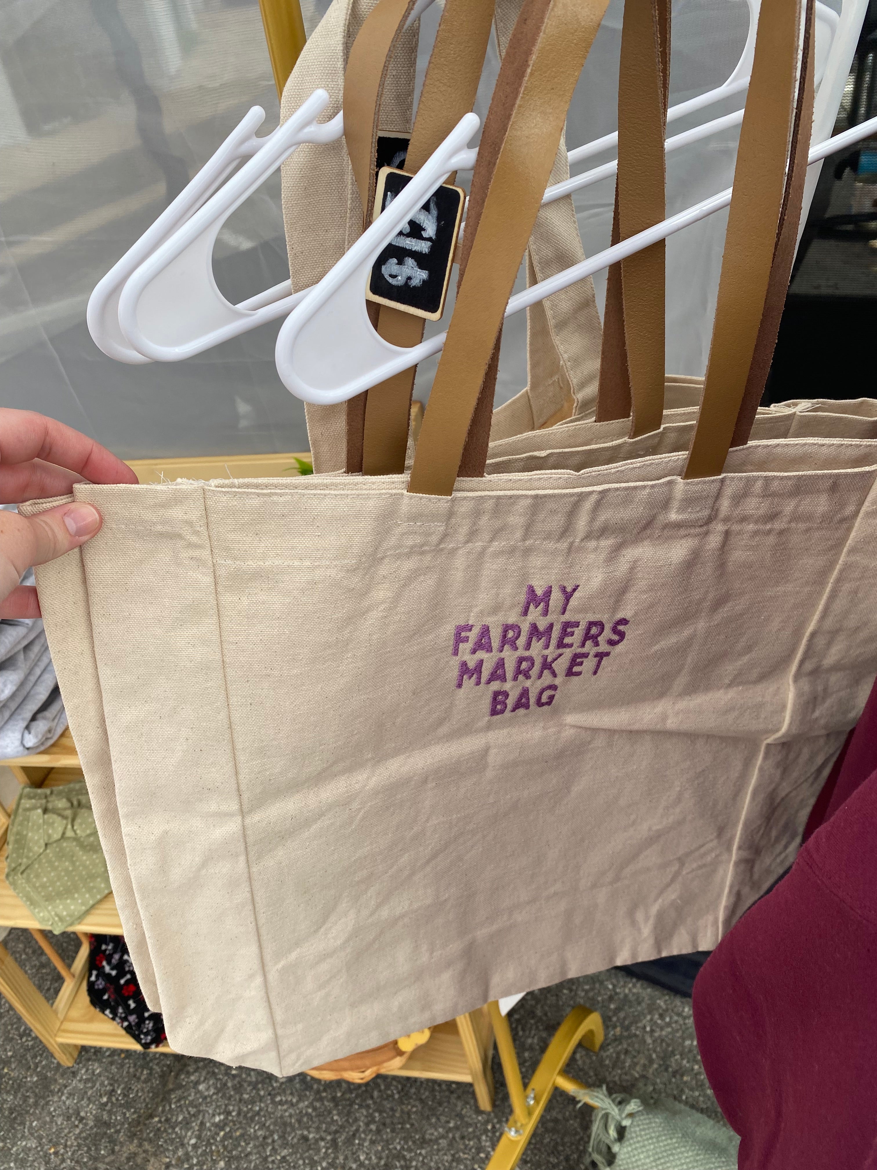 Shop Here!The embroidered farmer's market bag made with a delicate thread so you can store your items while shopping the markets.