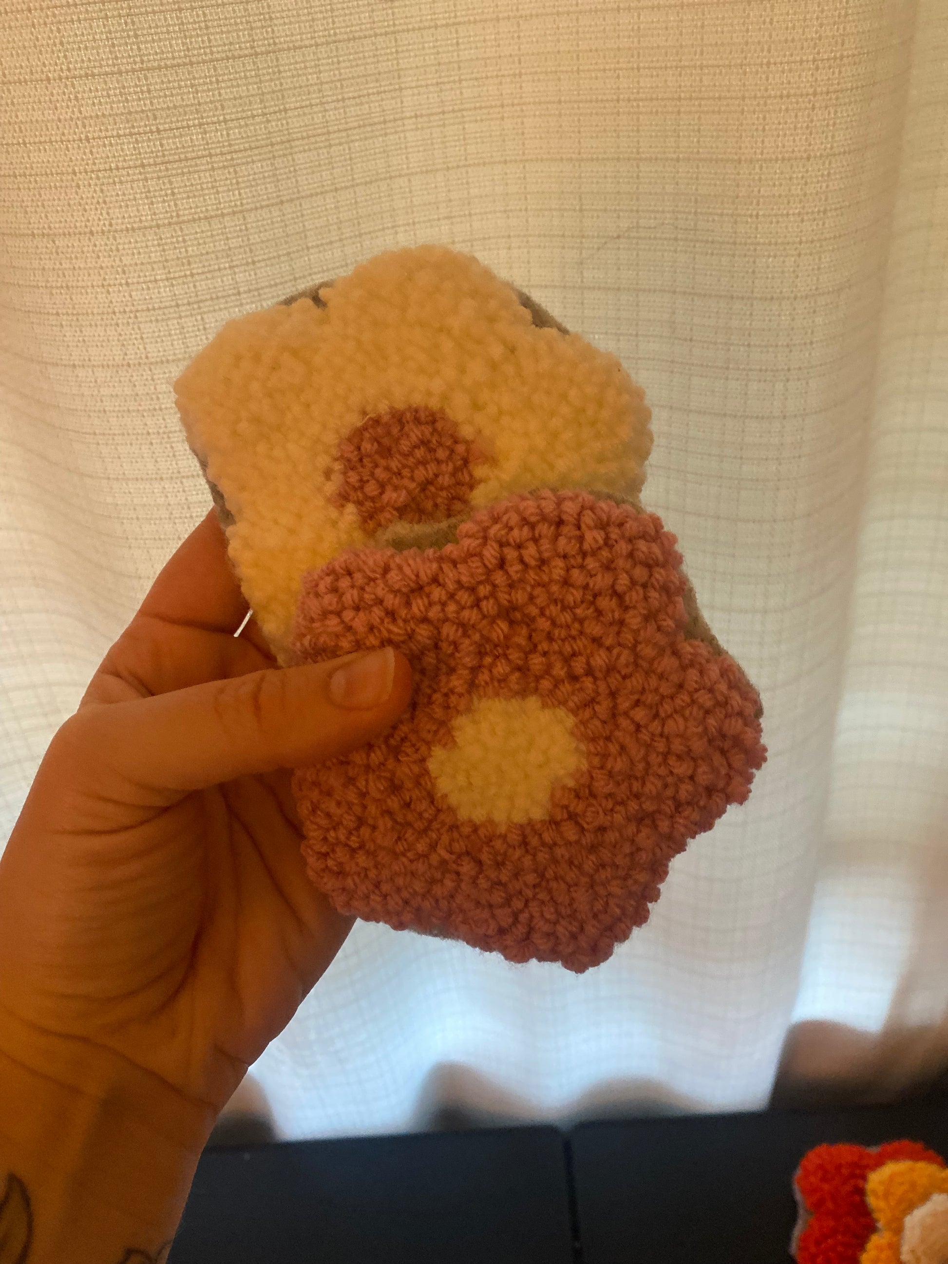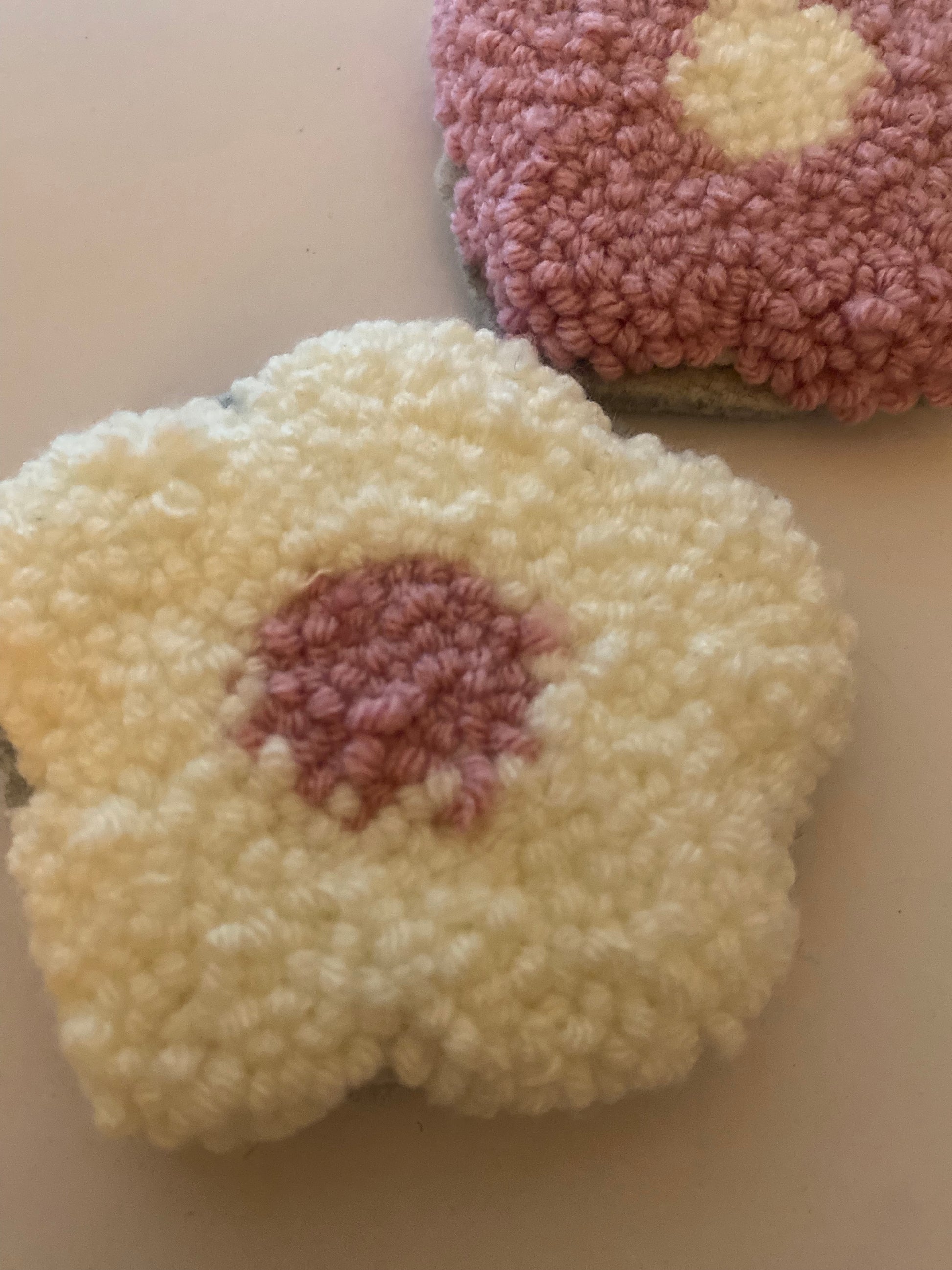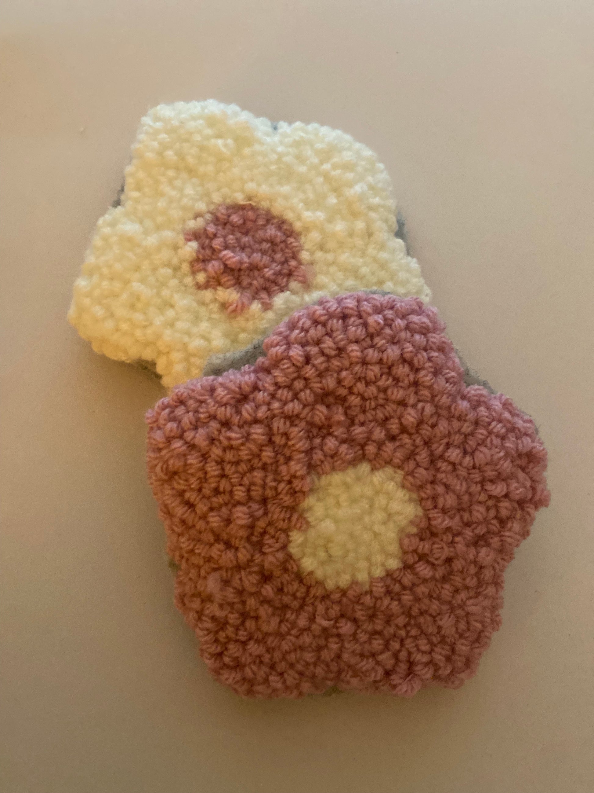 Crafted with precision, the pastel purple and white punch needle coasters showcase a delicate flower design that adds a refined touch to any setting. Each piece combines durable materials with intricate needlework, offering both aesthetic appeal and practical protection for surfaces. Perfect for elevating your coffee or tea experience, the coasters blend artistry with function seamlessly.
